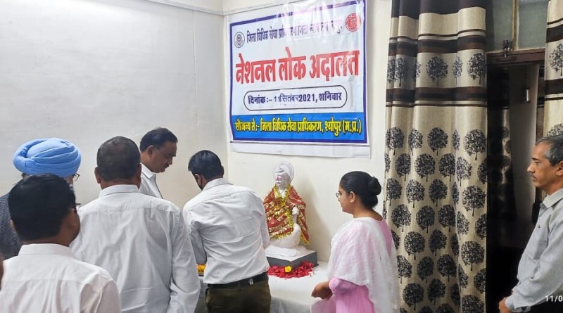 जिला न्यायालय श्योपुर में नेशनल लोक अदालत का शुभारंभ प्रधान जिला न्यायाधीश/अध्यक्ष जिला विधिक सेवा प्राधिकरण, श्योपुर प्रदीप मित्तल, के कर कमलों द्वारा द्वीप प्रज्जवलित एवं सरस्वती माता की प्रतिमा पर माल्यार्पण किया गया। इस मौके पर विशेष न्यायाधीश रविन्दर सिंह, सचिव जिला विधिक सेवा प्राधिकरण पवन कुमार बांदिल एवं अधिवक्तागण, जिला न्यायायलय, श्योपुर के सभी न्यायिक अधिकारीगण, जिला विधिक सहायता अधिकारी, कर्मचारीगण, सामाजिक कार्यकर्ता एवं विभिन्न विभागों के अधिकारीगण उपस्थित रहें।