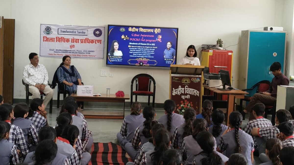 बूंदी.KrishnakantRathore/ @www.rubarunews.com-जिला विधिक सेवा प्राधिकरण, न्यायालय के तत्वावधान में मंगलवार को केंद्रीय विद्यालय बूँदी में “साइबर जागरूकता और पॉक्सो एक्ट” पर जागरूकता शिविर का आयोजन किया गया। इस कार्यक्रम में ट्रेनिंग मजिस्ट्रेट पूनम बैरा एवं अधिकार मित्र लवकुश हर्षल ने विद्यार्थियों को महत्वपूर्ण कानूनी विषयों पर जानकारी प्रदान की।
