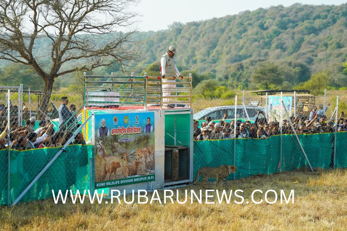 श्योपुर.Desk/ @www.rubarunews.com-मुख्यमंत्री डॉ मोहन यादव ने अंतरराष्ट्रीय चीता दिवस 4 दिसंबर के उपलक्ष्य में कूनो नेशनल पार्क पहुंचकर तीनों चीतों को खुले जंगल ने रिलीज किया। उन्होंने मादा चीता वीरा सहित उनके 9 माह के दो शावकों को जंगल में विचरण हेतु छोड़ा। श्योपुर जिले के कूनो नेशनल पार्क में आयोजित चीता रिलीज कार्यक्रम के दौरान श्योपुर जिले के प्रभारी मंत्री राकेश शुक्ला, मुख्य सचिव अनुराग जैन, पूर्व वन मंत्री रामनिवास रावत, सहरिया विकास प्राधिकरण के अध्यक्ष एवं केबिनेट मंत्री दर्जा तुरसनपाल बरिया, उपाध्याय राज्य मंत्री दर्जा सीताराम आदिवासी, अपर मुख्य सचिव वन विभाग अशोक वर्णवाल, कमिश्नर सुरेश कुमार, कलेक्टर एवं जिला मजिस्ट्रेट अर्पित वर्मा, पुलिस अधीक्षक सुधीर अग्रवाल, शिवपुरी कलेक्टर रविन्द्र चौधरी, पुलिस अधीक्षक अमन सिंह राठौड़, भाजपा जिला अध्यक्ष शशांक भूषण, पूर्व विधायक दुर्गालाल विजय, बृजराज सिंह चौहान, भाजपा प्रदेश कार्य समिति सदस्य महावीर सिंह सिसौदिया, कैलाश नारायण गुप्ता, भाजपा के पूर्व जिला अध्यक्ष सुरेन्द्र जाट, सुजीत गर्ग, शुभम मुद्ग़ल, सीसीएफ उत्तम कुमार, डीएफओ कूनो आर थिरूकुराल, सामान्य केएस रंधा आदि अधिकारी मौजूद रहे।