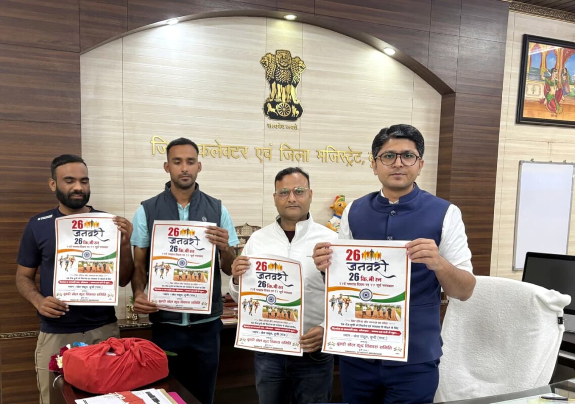 बूंदी.KrishnakantRathore/ @www.rubarunews.com- बूंदी खेलकूद विकास समिति की ओर से 77वें गणतंत्र दिवस के अवसर पर नागरिकों को स्वास्थ्य, अनुशासन और राष्ट्रप्रेम से जोड़ने के उद्देश्य से आयोजित किए जा रहे विशेष फिटनेस आयोजनों के पोस्टर का जिला कलक्टर अक्षय गोदारा ने विमोचन किया। जिला कलक्टर ने पोस्टर विमोचन के दौरान कहा कि ऐसे आयोजन युवाओं में स्वास्थ्य के प्रति जागरूकता बढ़ाने के साथ-साथ अनुशासन, आत्मबल और सकारात्मक जीवनशैली को प्रोत्साहित करते हैं। उन्होंने युवाओं से आह्वान किया कि वे इस प्रकार की गतिविधियों से जुड़कर स्वयं को स्वस्थ रखें और समाज को भी प्रेरित करें। इस दौरान अतिरिक्त पुलिस अधीक्षक उमा शर्मा, ब्रिगेडियर भूपेश हाड़ा, समिति अध्यक्ष शक्ति तोषनीवाल, योग गुरु दीपक गुर्जर, युवा मैराथन धावक गोविन्द प्रजापत उपस्थित रहे।