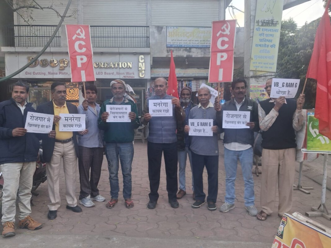 ” मनरेगा कायम रखो ” ,” बेरोजगारों से विश्वासघात बन्द करो ” ” VB _ G RAM G धोखा है ” रोज़गार से खिलवाड़ बन्द करो ” की नारेबाजी के साथ हुए प्रदर्शन में भाकपा के मध्य प्रदेश राज्य सचिव कॉमरेड शैलेन्द्र शैली ,एटक के प्रांतीय महासचिव कॉमरेड शिवशंकर मौर्य ,भाकपा नेता मुन्ने खां , लाखन सिंह ,फिदा हुसैन, शेर सिंह ,शहाबुद्दीन ,दिलीप विश्वकर्मा , हरीश शर्मा , नत्थू लाल राठौर आदि शामिल हुए।
