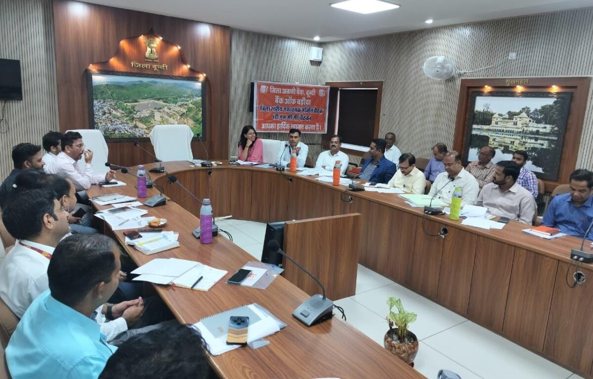 बूंदी.KrishnakantRathore/ @www.rubarunews.com-जिला सलाहकार समिति और जिला स्तरीय समीक्षा समिति की बैठक गुरुवार को कलेक्ट्रेट सभागार में आयोजित हुई। बैठक में बैंकों की वार्षिक साख योजना की प्रगति की समीक्षा की गई और लंबित ऋण आवेदनों का शीघ्रता से निस्तारण करने और सरकार की जनकल्याणकारी योजनाओं का लाभ अंतिम व्यक्ति तक पहुंचाने के निर्देश दिए गए।बैठक में भारतीय रिजर्व बैंक (आरबीआई) की अग्रणी जिला अधिकारी मृदुला माहेश्वरी ने जिले के बैंकों द्वारा वार्षिक साख योजना के लक्ष्यों में 45.25 प्रतिशत  की उपलब्धि अर्जित करने पर संतोष व्यक्त किया। साथ ही उन्होंने निर्देश दिए कि सरकार द्वारा संचालित सभी उद्यम प्रोत्साहन एवं रोजगार सृजन योजनाओं के तहत प्राप्त सभी बकाया आवेदन पत्रों का निस्तारण समयबद्ध और न्यायसंगत तरीके से सुनिश्चित किया जाए, ताकि पात्र व्यक्तियों को तत्काल राहत मिल सके।