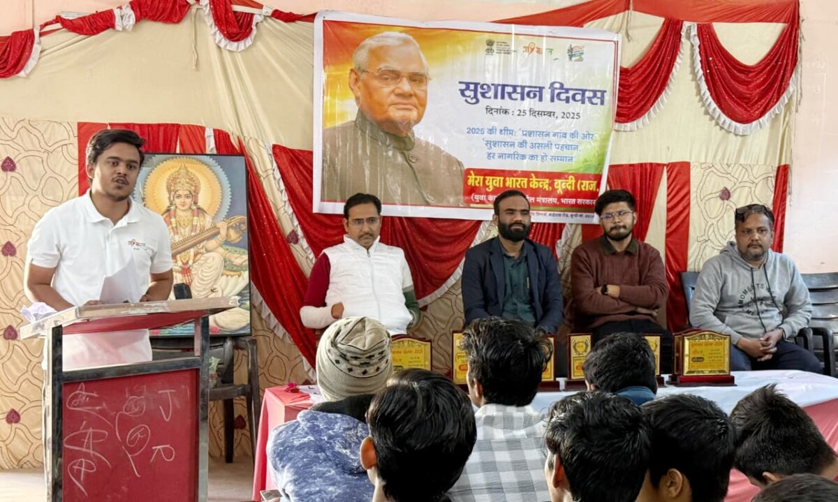 बूंदी.KrishnakantRathore/ @www.rubarunews.com-मेरा युवा भारत केंद्र,युवा कार्यक्रम एवं खेल मंत्रालय, भारत सरकार के द्वारा भारत के पूर्व प्रधानमंत्री एवं भारत रत्न अटल बिहारी वाजपेयी की जयंती के उपलक्ष्य में सुशासन दिवस पर रामेष्ट युवा मंडल संस्थान के सहयोग से संगोष्ठी, युवा-परिचर्चा, भाषण एवं ज्ञानवर्धक प्रश्नोत्तरी प्रतियोगिताओं का आयोजन किया गया। कार्यक्रम में मुख्य अतिथि भारत सरकार के प्रवर्तन निदेशालय (ईडी) के अधिकारी कुणाल मीना रहे।अध्यक्षता राष्ट्रीय युवा कार्यक्रम सहभागी गोविंद प्रजापत ने की।विशिष्ट अतिथि रामेष्ट युवा मंडल संस्थान के अध्यक्ष शिखर पंचोली एवं अध्यापक व हिंदी साहित्यकार ओमप्रकाश दाधीच मंचासीन रहे। अतिथियों ने अटल बिहारी वाजपेयी के छायाचित्र पर माल्यार्पण कर कार्यक्रम का विधिवत् शुभारंभ किया। मुख्य अतिथि मीना ने कहा कि अटल बिहारी वाजपेयी न केवल कुशल प्रशासक बल्कि दूरदर्शी राष्ट्रनायक थे, जिनका जीवन युवाओं के लिए प्रेरणास्रोत है। अध्यक्षीय संबोधन में प्रजापत ने युवाओं से अनुशासन, ईमानदारी एवं राष्ट्रहित को सर्वोपरि रखने का आह्वान किया। विशिष्ट अतिथियों ने भी अटल जी के विचारों को आत्मसात करने की आवश्यकता पर बल दिया। संचालन रोहन गुर्जर ने किया। विवेक गुर्जर, दीपेश सैनी एवं तुषार सैनी की उल्लेखनीय उपस्थिति रही।