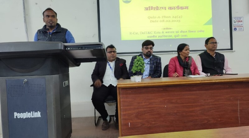बून्दी.KrishnakantRathore/ @www.rubarunews.com- राजकीय महाविद्यालय में शनिवार को राजस्थान सेंटर ऑफ एडवांस्ड टेक्नोलॉजी व डिपार्टमेंट ऑफ़ इनफार्मेशन टेक्नोलॉजी एंड कम्युनिकेशन कोटा तथा नवाचार एवं कौशल विकास प्रकोष्ठ की ओर से एक अभिप्रेरणा कार्यक्रम का आयोजन किया गया। कार्यक्रम की अध्यक्षता महाविद्यालय प्राचार्य डॉ. अनिता यादव ने की। विशिष्ट वक्ता डॉ. आशुतोष डिवीजनल मैनेजर राजस्थान सेंटर ऑफ एडवांस्ड टेक्नोलॉजी कोटा रहे।