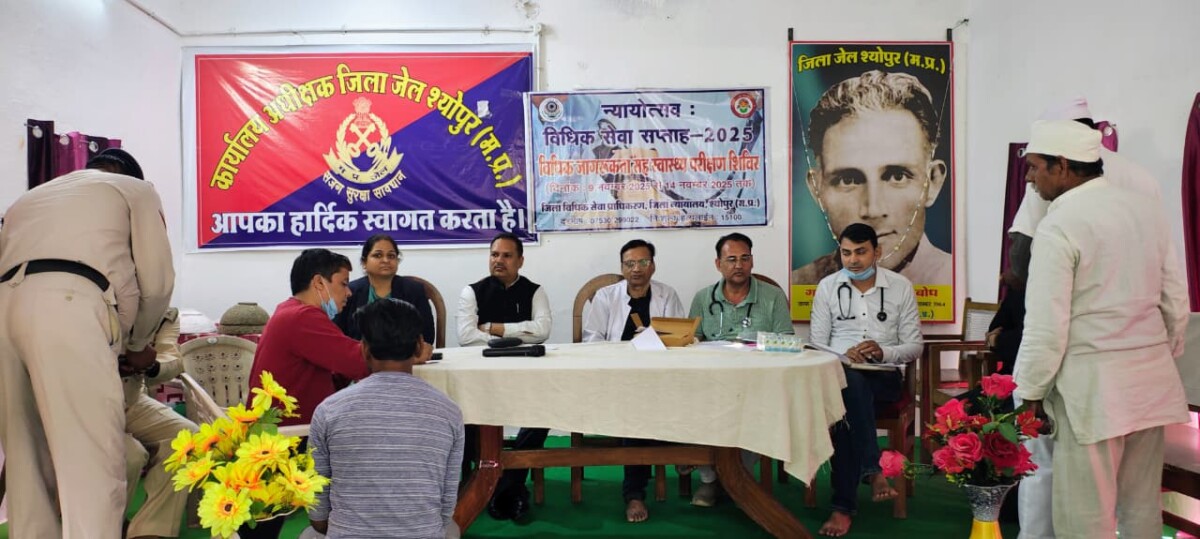 श्योपुर.Desk/ @www.rubarunews.com- म.प्र. राज्य विधिक सेवा प्राधिकरण जबलपुर के दिशा-निर्देशानुसार न्यायोत्सवः विधिक सेवा सप्ताह (दिनांक 09.11.2025 से दिनांक 14.11.2025) के अंतर्गत जिला जेल जिला श्योपुर में विशेष न्यायाधीश लीलाधर सोलंकी की अध्यक्षता एवं जिला चिकित्सालय श्योपुर के संयुक्त तत्वाधान में विधिक साक्षरता शिविर सह स्वास्थ्य परीक्षण शिविर का आयोजन किया गया।