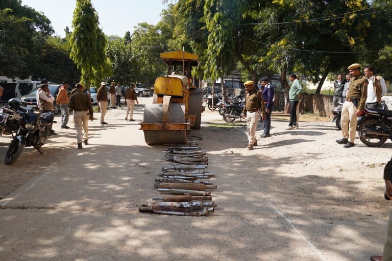 बूंदी.KrishnakantRathore/ @www.rubarunews.com-बूंदी पुलिस ने 2 अवैध/ मॉडिफाइड साइलेंसर बाईकर के विरुद्ध कार्यवाही करते हुए 125 बिना मानक , पटाखा साइलेंसर तथा अत्यधिक आवाज करने वाले मॉडिफाइड साइलेंसर को बुलडोजर चलवा कर नष्ट किया गया।जिला पुलिस अधीक्षक बूंदी राजेन्द्र कुमार मीणा आई.पी.एस. ने बताया की यातायात पुलिस बून्दी द्वारा आज 2 अवैध/ मॉडिफाइड पटाखा साइलेंसर बाईकर के विरुद्ध कार्यवाही करते हुये वर्ष 2025 में खुलवाये गये 125 अवैध/ मॉडिफाइड पटाखा साइलेंसर को पुलिस लाईन में रोड पर कुचल कर नष्ट किया गया।