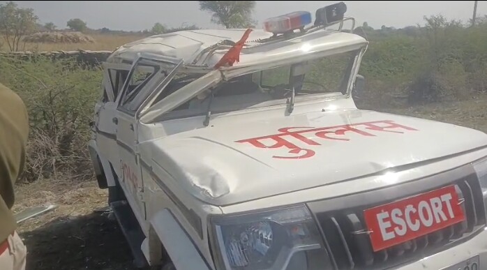 बासनी बॉर्डर पर कंटेनर की टक्कर से पुलिस स्कॉर्ट बोलेरो क्षतिग्रस्त, 4 पुलिसकर्मी घायल