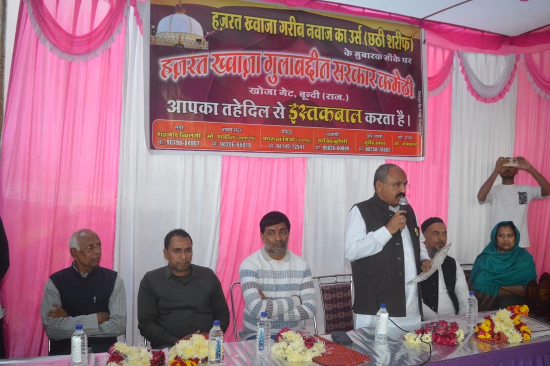 बूंदी.KrishnakantRathore/ @www.rubarunews.com- ख्वाजा गरीब नवाज़ के उर्स के अवसर पर बूंदी में शनिवार रात मुस्लिम समाज का प्रतिभा सम्मान समारोह आयोजित किया गया।गरीब नवाज़ की छठी शरीफ़ खोजा गेट दरगाह पर मनायी गयी जहां पर दरगाह कमेटी की ओर से जिले के शिक्षा के क्षेत्र में उत्कृष्ट प्रदर्शन करने वाले प्रतिभाशाली विद्यार्थियों,राजकीय सेवा में चयनित होने वालो के साथ सामाजिक क्षेत्र में सराहनीय योगदान देने वालों का स्मृति चिन्ह और प्रमाण पत्र भेंट कर सम्मान किया गया।समारोह के मुख्य अतिथि पूर्व विधायक प्रहलाद गुंजल रहे। अध्यक्षता राजस्थान बीज निगम के पूर्व निदेशक पीसीसी सदस्य चर्मेश शर्मा ने की।मुख्य वक्ता नायब शहर काजी इमरान कादरी रहे।वहीं उपसभापति लटूर भाई,पूर्व सभापति हिना अगवान,पार्षद देवराज गोचर,पार्षद इरफान इलू विशिष्ट अतिथि रहे।हजरत ख्वाजा गुलबुद्दीन सरकार कमेटी के सदर शहज़ाद खिलजी ने अतिथियों का माल्यार्पण कर व साफा बांध कर स्वागत किया। कार्यक्रम के बाद दरगाह पर लंगर का आयोजन किया गया जिसमें हजारों लोगों ने भोजन किया।समाजसेवा में अग्रणी भूमिका निभाये-गुंजल