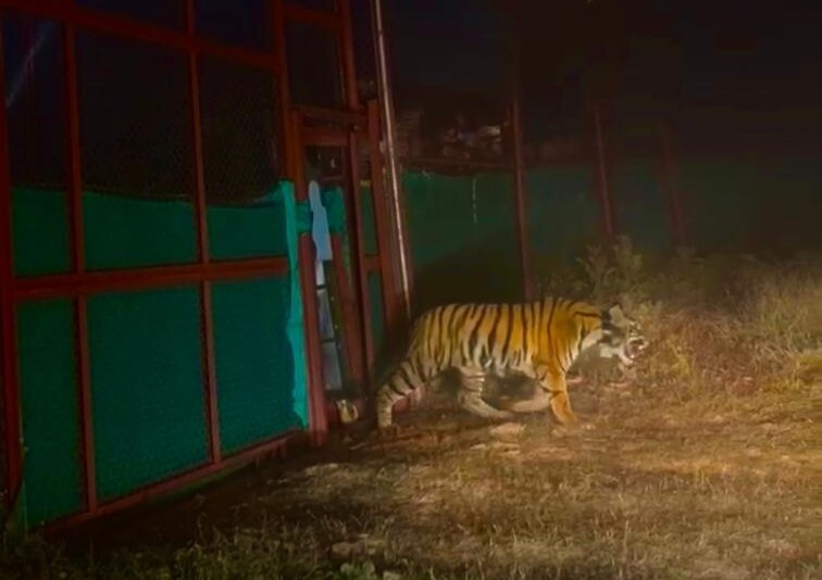 पेंच टाइगर रिजर्व से हेलीकॉप्टर में सवार होकर जयपुर पहुंची रामगढ़ की रानी बाघिन पी एन 224