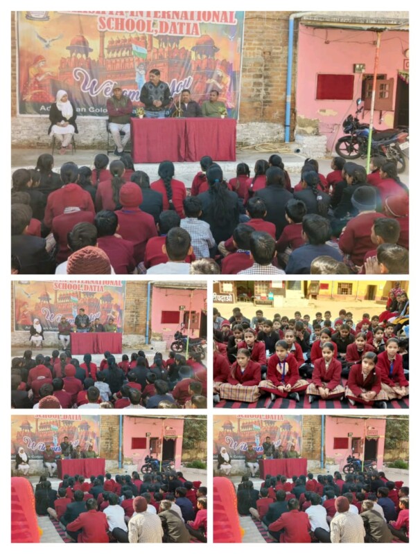 बच्चों की जिज्ञासाओं का समाधान,कार्यक्रम के दौरान छात्र-छात्राओं एवं स्टाफ द्वारा पूछे गए प्रश्नों का अतिथियों ने सहज, संवेदनशील और प्रेरक उत्तर देकर उनकी जिज्ञासाओं का समाधान किया। इससे बच्चों में कानून, सुरक्षा और अधिकारों को लेकर विश्वास और जागरूकता बढ़ी। विद्यालय प्रशासन की सराहनीय पहल कार्यक्रम की अध्यक्षता कर रहे राशिद खान ने कहा कि विद्यालय में इस प्रकार के जागरूकता आधारित कार्यक्रमों का सतत आयोजन किया जाएगा, जिससे बच्चों का सर्वांगीण विकास सुनिश्चित हो सके। उन्होंने अतिथियों का आभार व्यक्त करते हुए बच्चों की सक्रिय सहभागिता की प्रशंसा की। प्रतियोगिताओं में बच्चों ने दिखाई प्रतिभा, वीर बाल दिवस एवं बाल अधिकार विषय पर आयोजित भाषण और वाद-विवाद प्रतियोगिताओं में बच्चों ने साहस, बलिदान, अधिकारों की समझ और सामाजिक जिम्मेदारी जैसे विषयों पर प्रभावशाली विचार प्रस्तुत किए जिससे कार्यक्रम का उद्देश्य सार्थक हुआ।