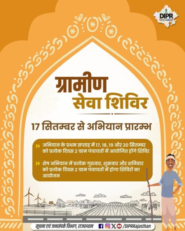 बूंदी.KrishnakantRathore/ @www.rubarunews.com>>प्रदेश सरकार गांव-गांव में ‘ग्रामीण सेवा शिविर’ लगाकर आमजन को बड़ी राहत देने जा रही हैं। जिले में 17 सितंबर से शुरू हो रहे इन शिविरों में एक ही छत के नीचे आमजन से जुड़े विभिन्न कार्य निपटाए जाएंगे। शिविरों का मुख्य उद्देश्य ग्रामीणों को उनके घर के पास ही सरकारी योजनाओं का लाभ देना, उनकी समस्याओं का समाधान करना और विकास कार्यों को गति देना हैं।