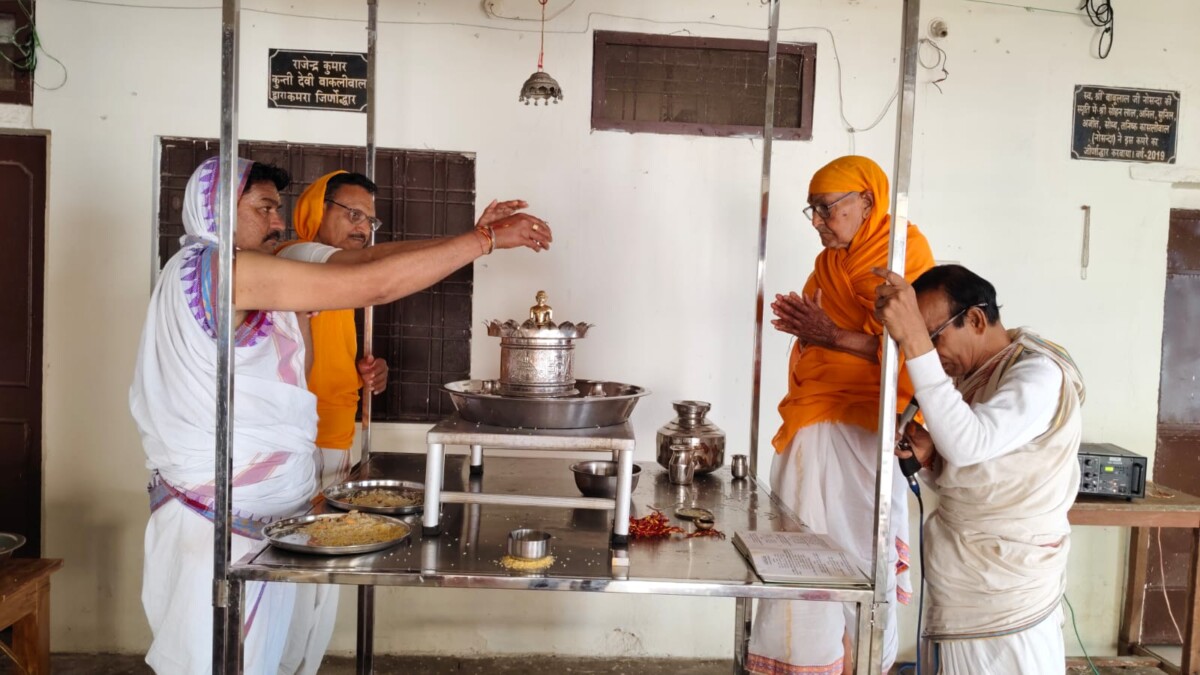 बूंदी.KrishnakantRathore/ @www.rubarunews.com-शहर के चौगान गेट स्थित दिगंबर जैन आश्रम में समाजसेवी पूर्व पार्षद स्वर्गीय श्रीमती राजेश जैन की पुण्य स्मृति में शांति मंडल विधान का आयोजन हुआ । कार्यक्रम में नित्य नियम की पूजा अर्चना की गई । शांति धारा करने का सौभाग्य अभिषेक जैन परिवार को प्राप्त हुआ । संगीतमय मंडल विधान महिलाओ ने भजनों की धुन पर नृत्य किया । महिला पुरुषों ने अर्घ चढ़ाया । अंत में महा आरती के साथ विधान की क्रिया समाप्त ही । मंडल विधान की क्रिया पंडित सुरेश जैन ने संपन्न करवाई । इस दौरान कैलाश चंद पाटनी , प्रदुमन पाटनी ,योगेंद्र जैन , संतोष पाटनी, सुरेंद्र छाबड़ा, पारस पाटनी ,नरेश बाकलीवाल ,नरेंद्र कासलीवाल ,नरेश पापड़ीवाल , नीतू चाँदवाड , रंजना पाटनी , कमलेश पाटनी, सुनीता पाटनी, मुकेश बाकलीवाल , मैना बड़जात्या, मैना गंगवाल सहित महिला पुरुष मौजूद रहे ।