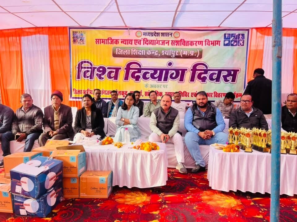 इस अवसर पर आयोजित स्वास्थ्य परीक्षण शिविर भी लगाया गया तथा दिव्यांगजनों के लिए संचालित शासन की विभिन्न कल्याणकारी योजनाओं एवं कार्यक्रमों के बारे में जानकारी भी प्रदान की गई। शिविर में कुल 178 दिव्यांगजनो द्वारा भागीदारी की गई। इस अवसर पर सीईओ जिला पंचायत सुश्री सौम्या आनंद, भाजपा जिला अध्यक्ष शशांक भूषण, जिला पंचायत उपाध्यक्ष नीरज जाट, नगरपालिका उपाध्यक्ष संजय महाना, विधायक श्योपुर प्रतिनिधि सिराज दाउदी, एसडीएम बीएस श्रीवास्तव, विधिक सहायता अधिकारी योगेश बंसल, उप संचालक सामाजिक न्याय श्रीमती शशिकिरण इक्का, डीपीसी भूपेन्द्र शर्मा, एपीसी राकेश शर्मा, प्रशासनिक अधिकारी डीडीआरसी सतीश सिंह, बीआरसी कराहल सहित डीडीआरसी के अनिल यादव, राजभान पटेल, अशोक यादव, सुश्री दीपिका तोमर, राछौर तोमर अन्य अधिकारी एवं जनप्रतिनिधि उपस्थित रहें।
