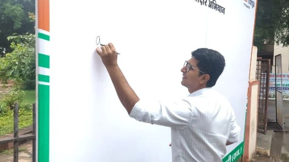 बूंदी.KrishnakantRathore/ @www.rubarunews.com- स्वतंत्रता दिवस के जश्न की श्रृंखला में ‘हर घर तिरंगा’ अभियान को जन-जन तक पहुंचाने के संकल्प के साथ जिला प्रमुख चंद्रावती कंवर तथा जिला कलक्टर अक्षय गोदारा ने गुरुवार को हस्ताक्षर अभियान का शुभारंभ किया।