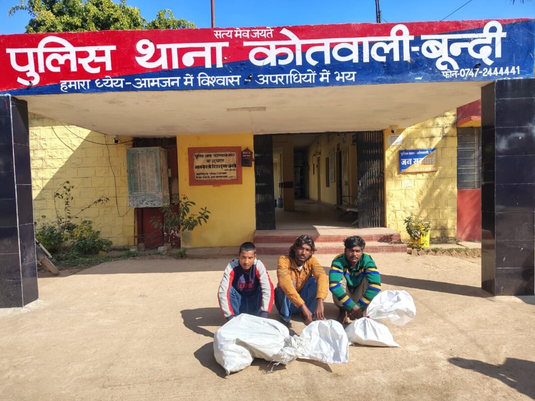 पुलिस अधीक्षक राजेन्द्र कुमार मीणा ने बताया कि पिछले दिनों बून्दी शहर के बाजारों में स्थित दुकानों की छतों पर लगे ए.सी. कॉपर वायर व आउटर चोरी की घटना की वारदात के क्रम मे अपराधियों की धरपकड हेतु थाना कोतवाली बून्दी के थानाधिकारी रमेशचन्द आर्य के नेतृत्व में गठित पुलिस टीम द्वारा प्रभावी कार्यवाही करते हुये मुख्य मास्टरमाइंड आरोपी सूरज पंवार उर्फ चुण्डी सहित 3 आरोपियों को गिरफ्तार किया गया है।