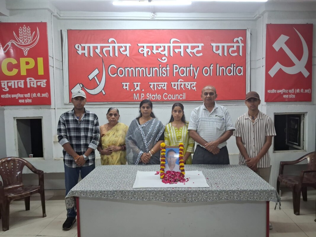 भोपाल.Desk/ @www.rubarunews.com-भारतीय कम्युनिस्ट पार्टी और एटक के दिवंगत नेता कॉमरेड रूप सिंह चौहान की स्मृति में श्रद्धांजलि सभा भारतीय कम्युनिस्ट पार्टी द्वारा अपने राज्य कार्यालय शाकिर सदन भोपाल में आयोजित की गई।श्रद्धांजलि सभा में प्रबुद्ध जनों ने दिवंगत कॉमरेड रूप सिंह चौहान को विभिन्न संस्मरणों के माध्यम से श्रद्धांजलि अर्पित की ।*